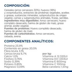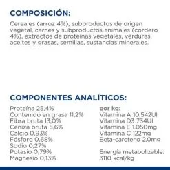 ClaveContiene profiteert glucosamine en chondroïtine uit natuurlijke bronnen en het handhaven van gezonde gewrichten. Evenwichtige niveaus van natrium en fosfor gezonde vitale organen te behouden. Gemakkelijk verteerbare ingrediënten voor een goede opname van voedingsstoffen. Gemaakt met een hoge kwaliteit ingrediënten voor een heerlijke smaak. 100% gegarandeerd. Het dagelijkse rantsoen is afhankelijk van het ras, gewicht, activiteit, hoogte en hond milieu. Bij het gebruik van dit voedsel voor de eerste keer, je mengen dit voedsel met de huidige eten (in kleine hoeveelheden) gedurende ca. tijd. 7 dagen. Vergeet niet om altijd te plaatsen beschikbaar zoet water voor uw huisdier. Als u wilt dat uw huisdier gezond blijft, dient u te voeden met een evenwichtige maaltijd en neem het mee naar de dierenarts regelmatig (minstens 2 keer per jaar). Nutritionele analyse als voedsel