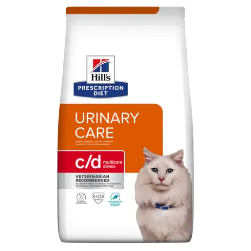 Feeding Prescription Diet â„¢ c / d â„¢ Multicare Feline met Vis maakt het makkelijker om de urinewegen effectief te handhaven en het vermindert het risico dat de stenen opnieuw zullen optreden. Belangrijkste voordelen